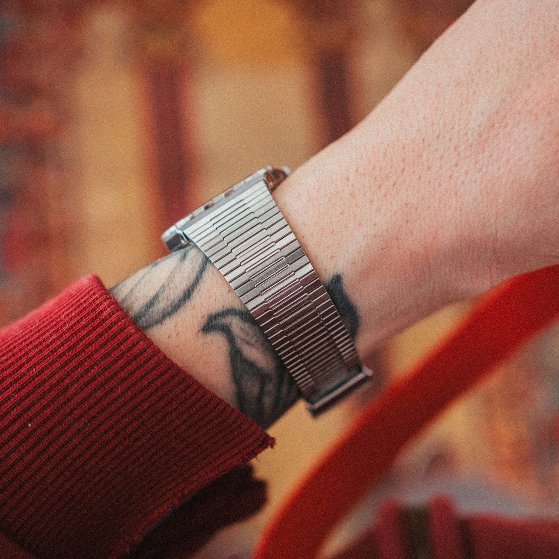 A clean stainless Citizen Leopard with a crisp silver dial and that sharp, angular case shape the era is known for. Minimal, easy to wear, and quietly refined on the wrist.