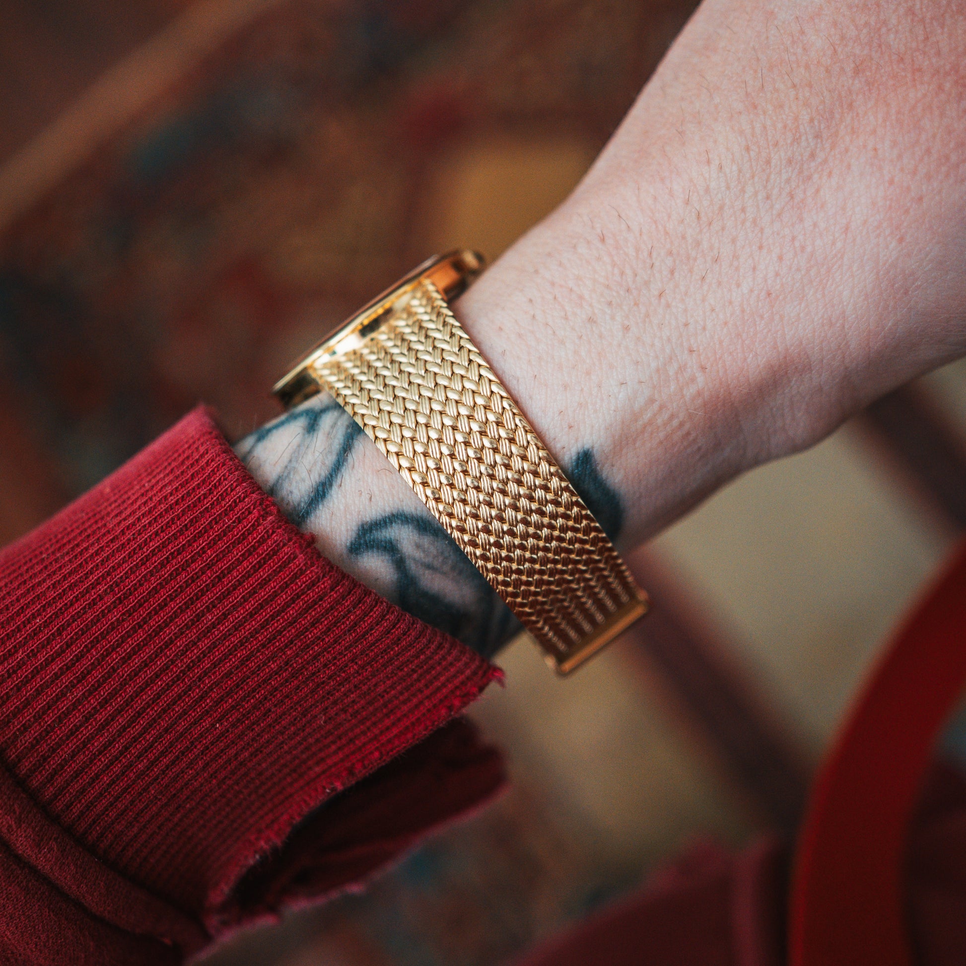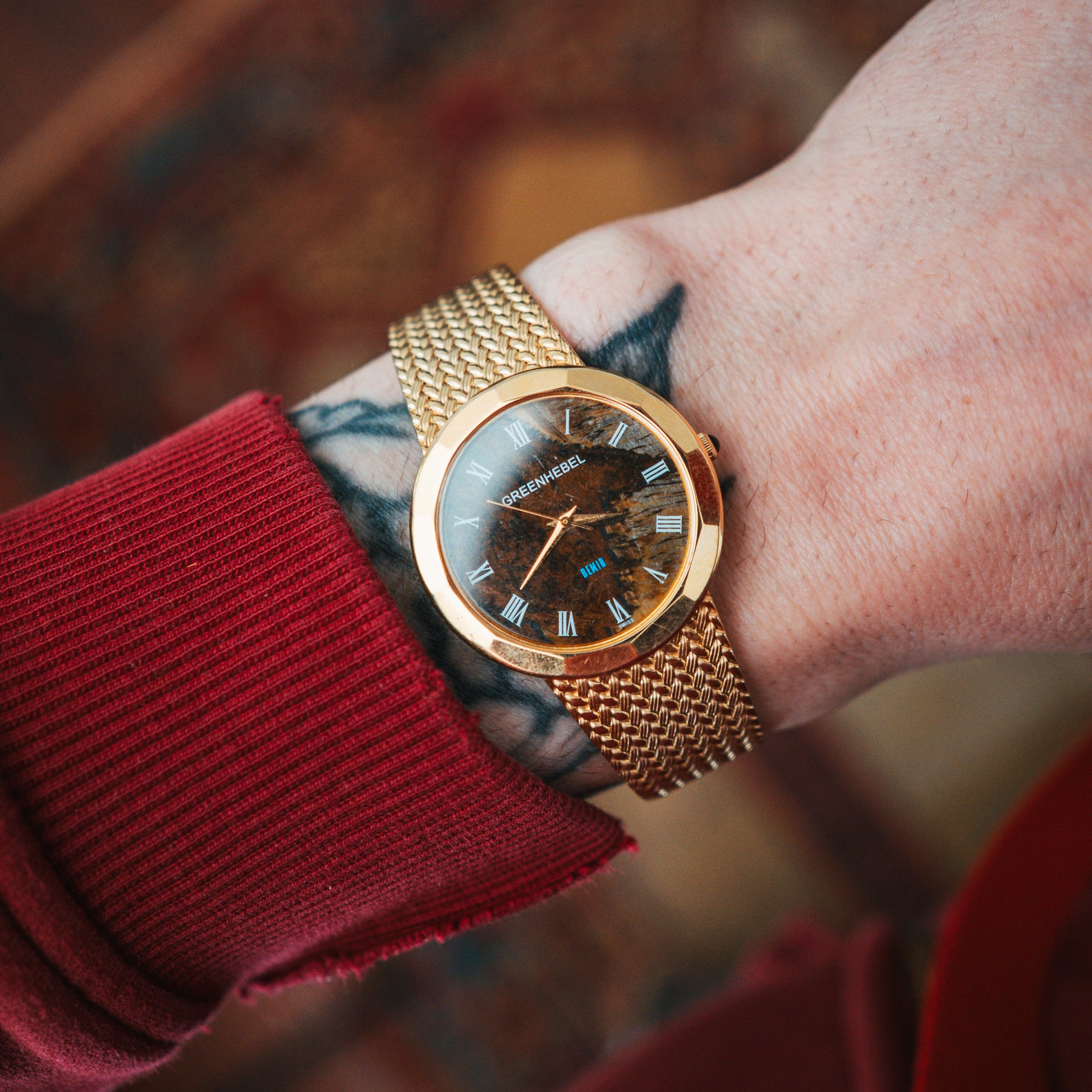 A neo-vintage watch paired with a custom handmade burl wood dial. Each dial is handmade and one of one — wearable art.
