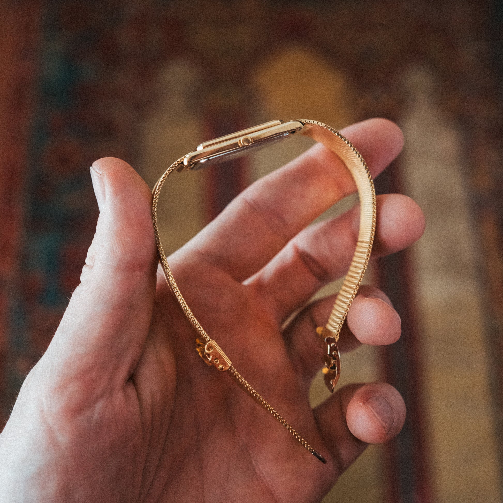 • Gold-tone rectangular case