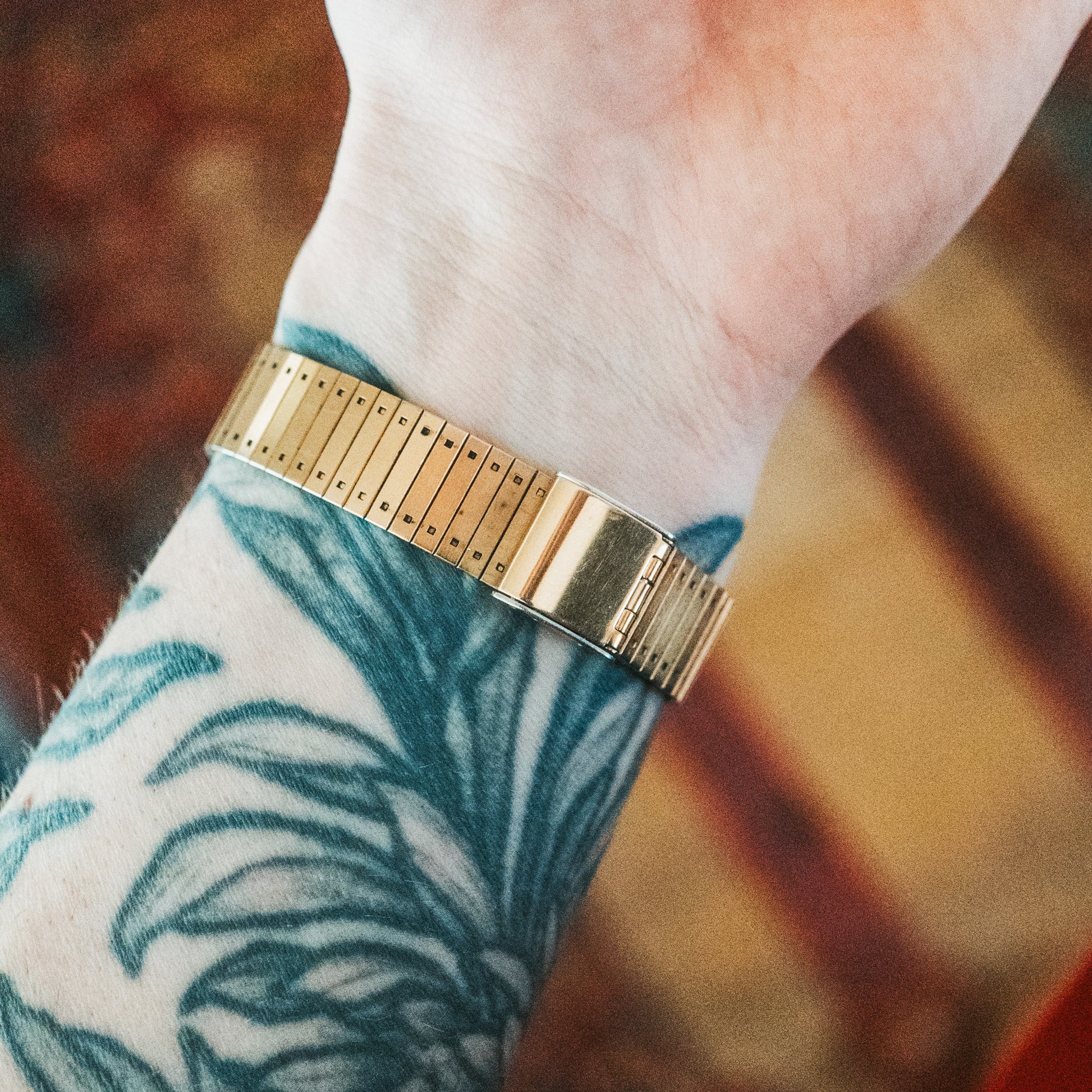 Bracelet: Original gold-tone expansion bracelet with a sophisticated ribbed texture. A new clasp has been installed for added security and reliable everyday wear. Free size bracelet with a tool-less adjustable clasp fitting most wrists.