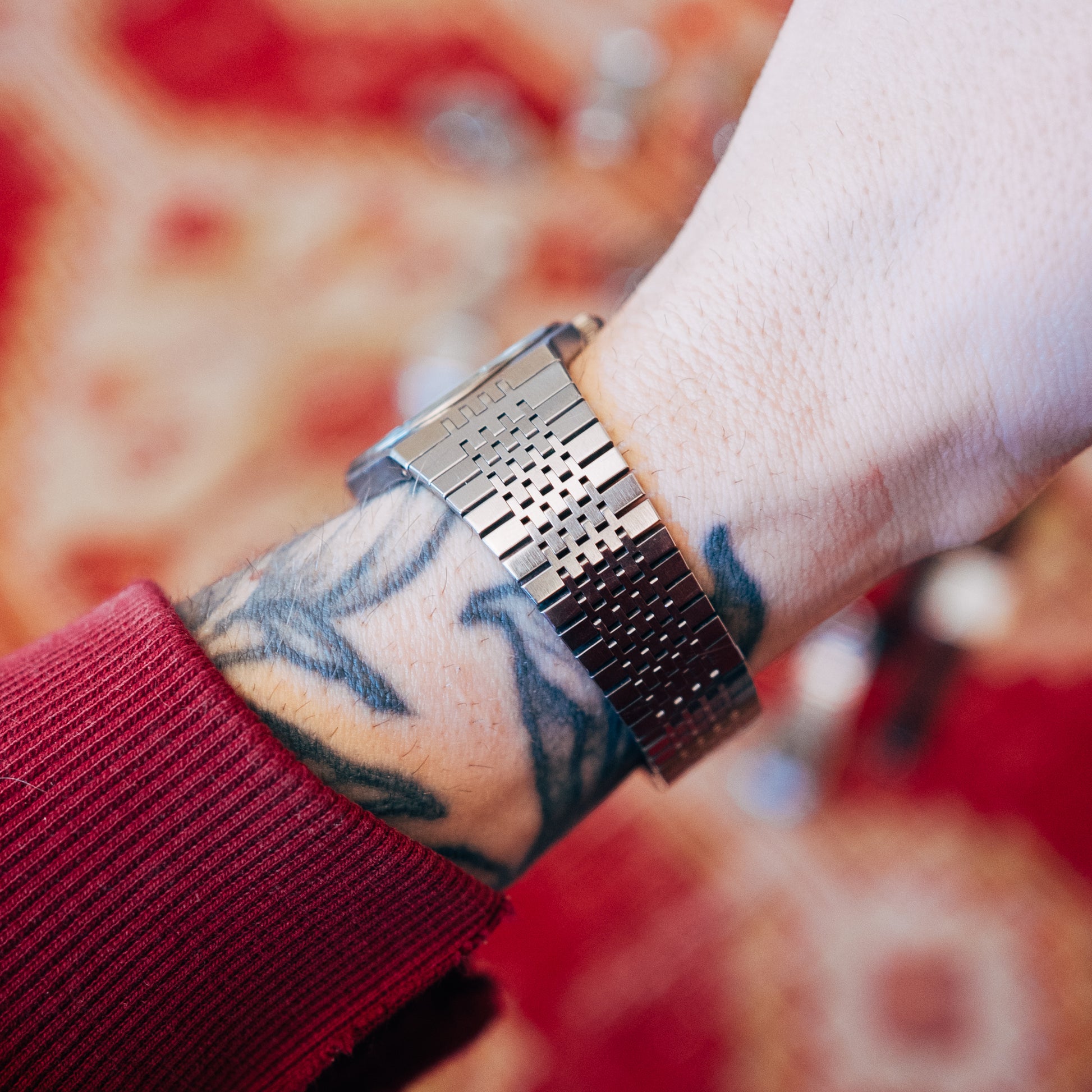 Bracelet & Fit: Adjustable stainless steel mesh bracelet, comfortably fitting my 17.5cm wrist or smaller.