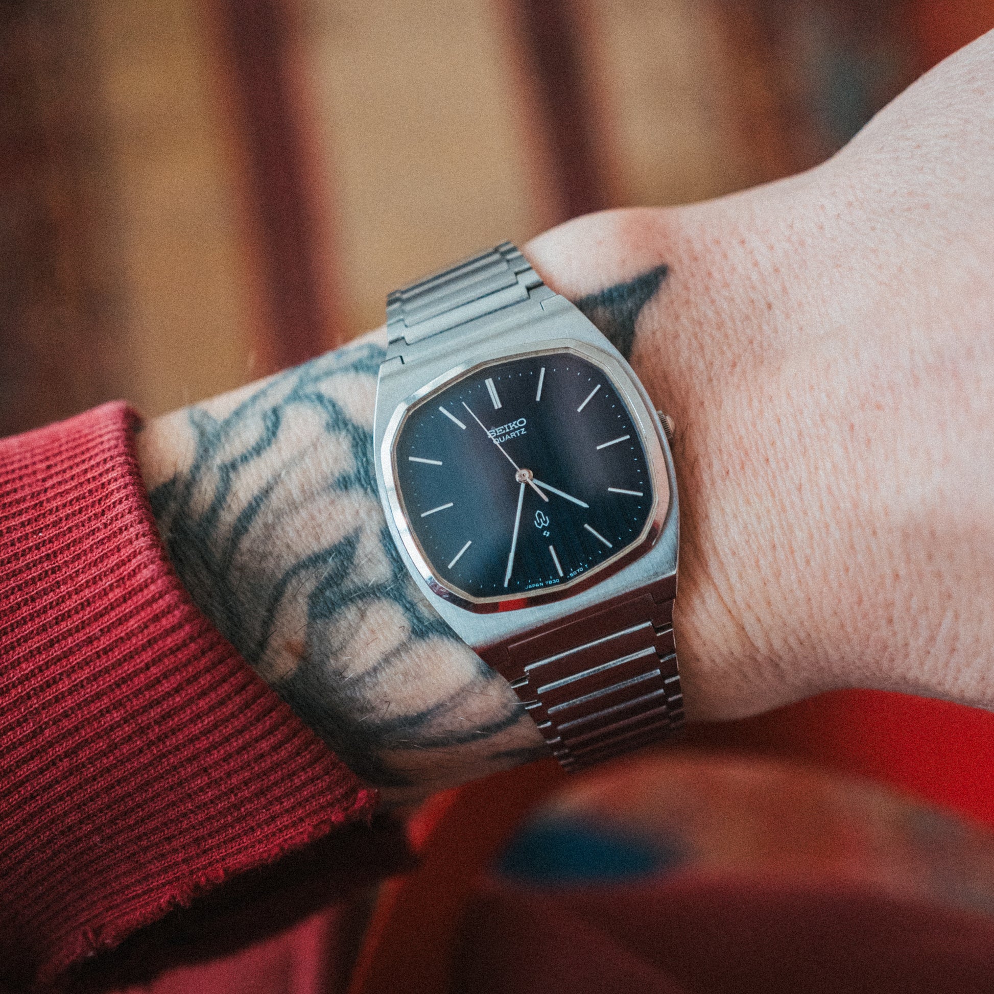 A clean, refined Seiko with a navy pinstripe dial that hits that perfect balance between minimal and elevated. Subtle texture, sharp indices, and a case shape that feels straight out of the neo-vintage golden era (this case shape is much less common)