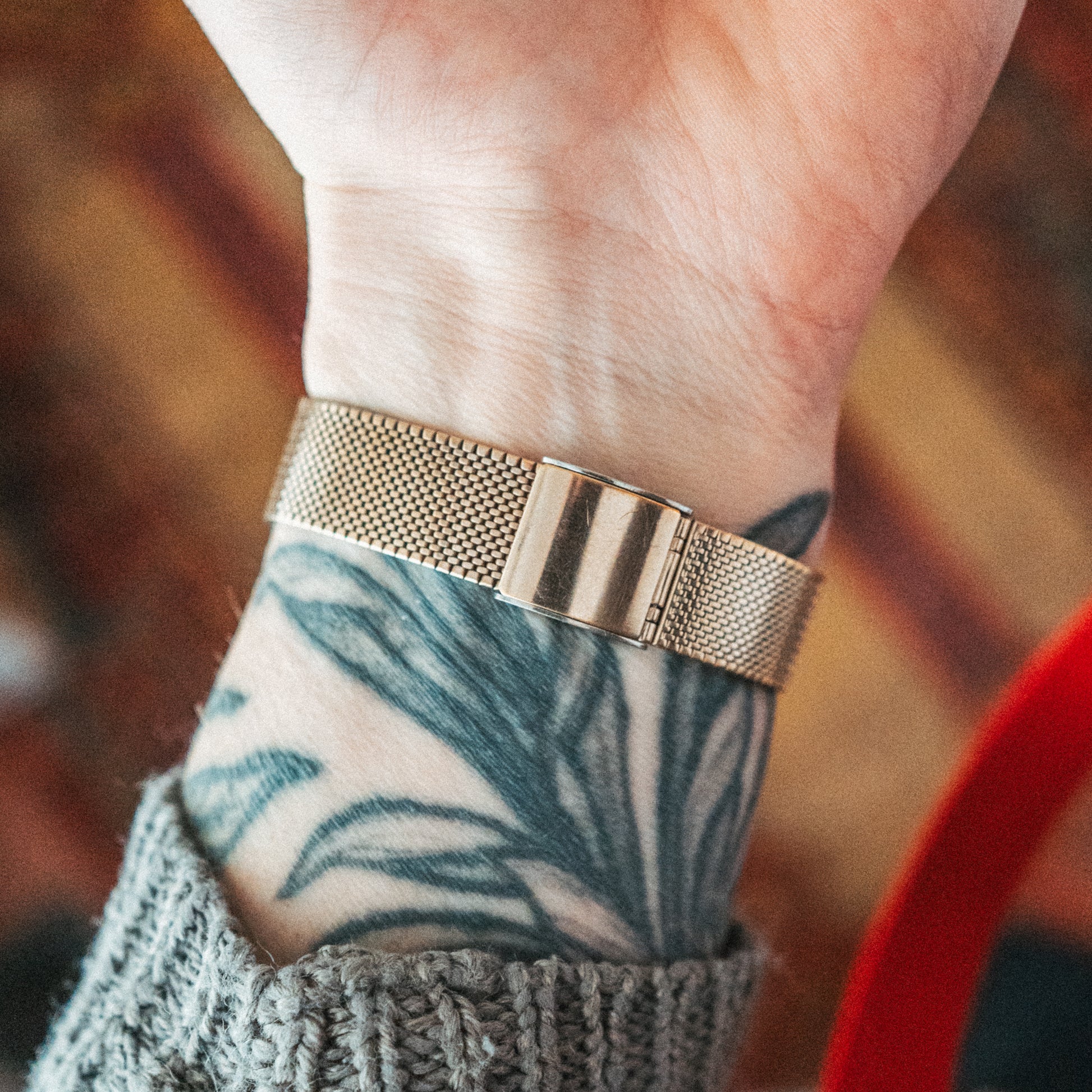Bracelet: Integrated mesh bracelet with secure folding clasp. Free size bracelet with a tool-less adjustable clasp fitting most wrists.