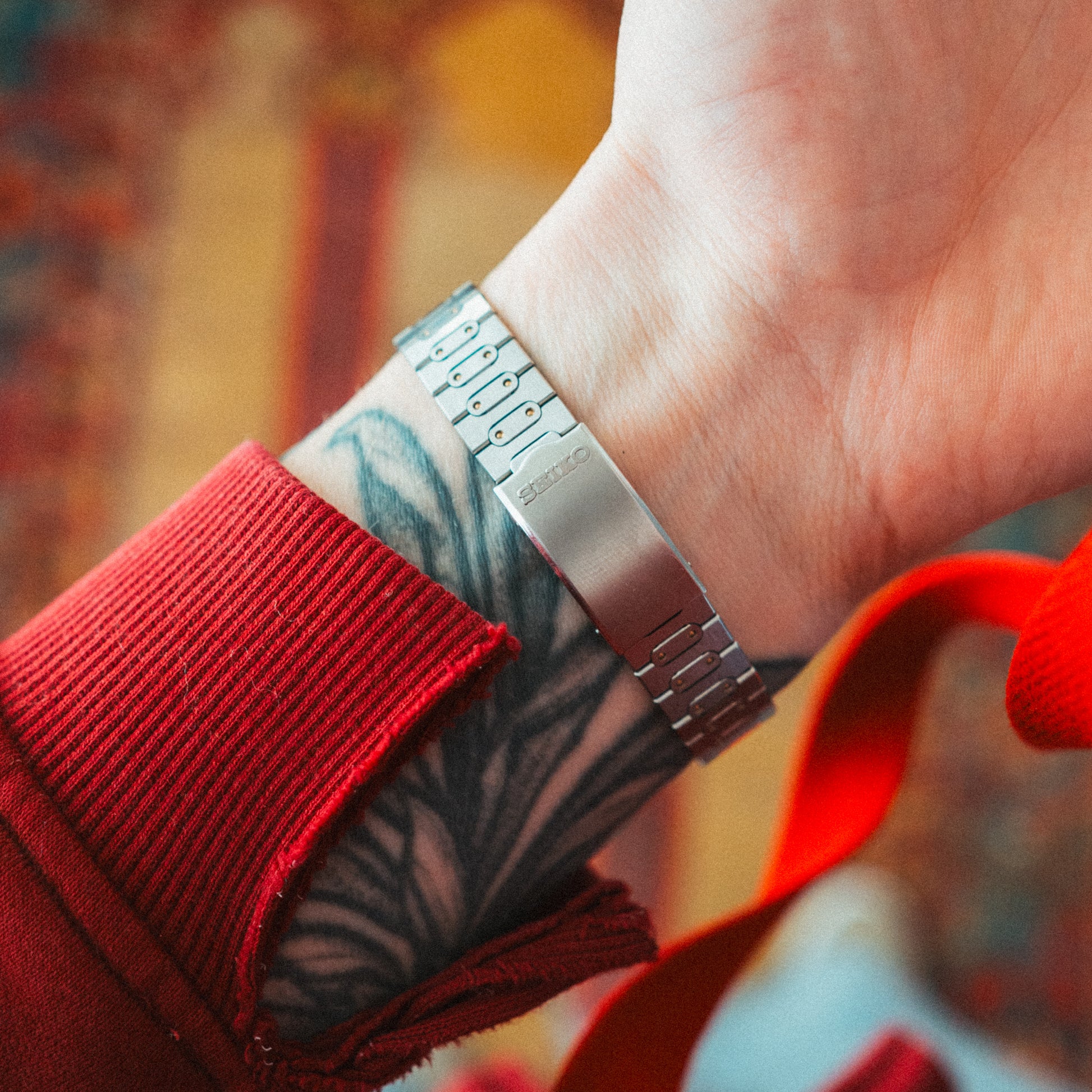 A refined, elegant Seiko with that unmistakable 90s design sophistication and a striking two-tone aesthetic. The cushion-shaped case has real presence — brushed steel with gold accents on the bezel that catch the light beautifully, giving it a polished, architectural elegance on the wrist.