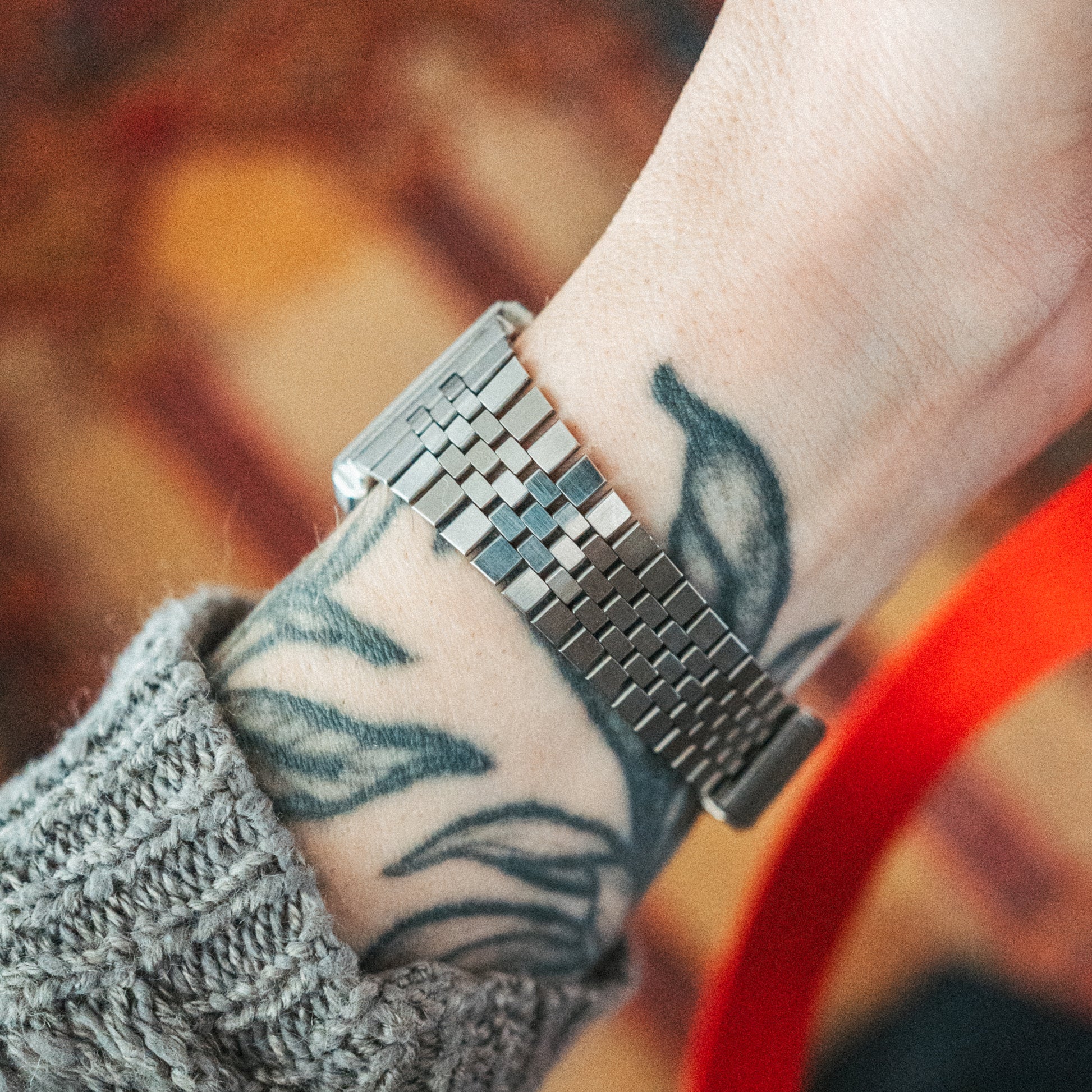 Bracelet: Original Seiko beads-of-rice bracelet with an updated clasp for improved security and comfort. Free size bracelet with a tool-less adjustable clasp fitting most wrists.