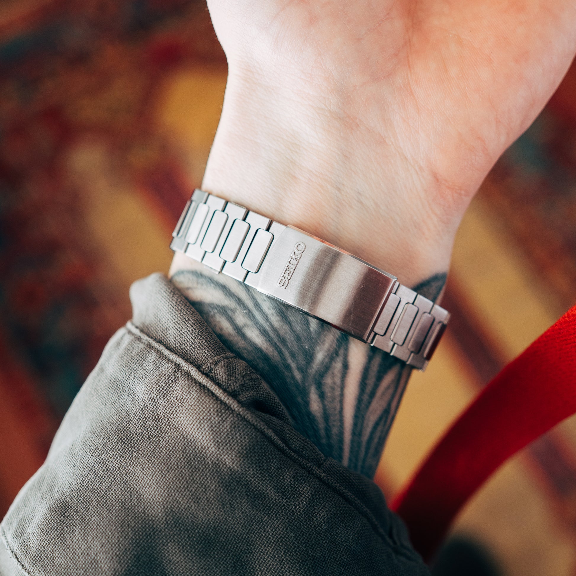 A refined neo-vintage Seiko Silverwave that embodies minimalist elegance through its monochromatic design. The all-steel construction creates a cohesive, understated aesthetic that defined Japanese watchmaking in its golden era.