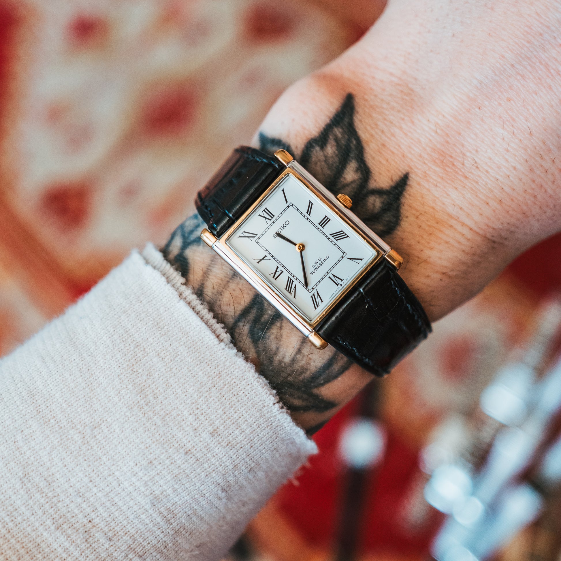 A refined neo-vintage Seiko Tank in near new old stock condition—a rare find that captures the understated elegance of Japanese dress watchmaking at its finest.