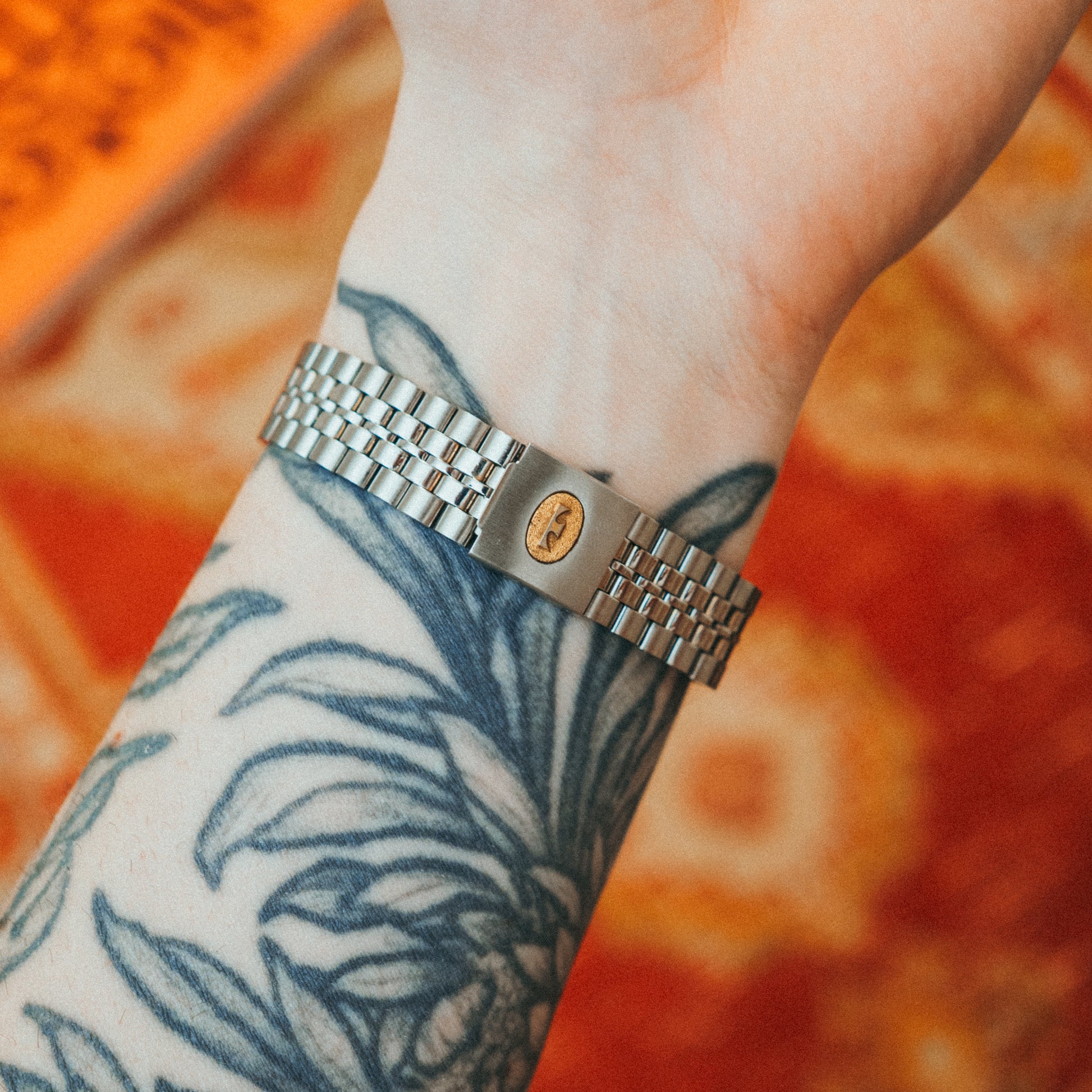 Fitted on the original two-tone bracelet with alternating brushed steel and polished gold links, this watch wears comfortably with a secure fold-over clasp. The bracelet is adjustable, comfortably fitting a 17.5cm wrist or smaller.