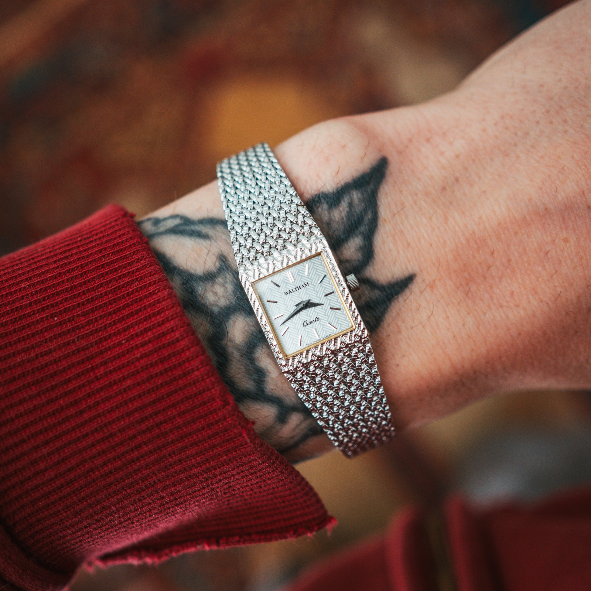 The Waltham Quartz is a rare survivor from the neo-vintage era — a time when American heritage met Japanese quartz precision, dressed up for the wrist in full silver mesh armor. Traditionally marketed towards women, its compact dial size is now exactly what the moment calls for. Tiny watches are in, and this one does it with serious texture.